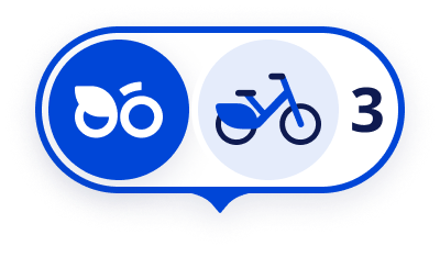 So sehen einzelne Fahrräder in der Karte aus. Je nach System können sie unterschiedliche Farben haben. Zusatzsymbole für e-Bikes oder Cargobikes sind je nach System möglich.
